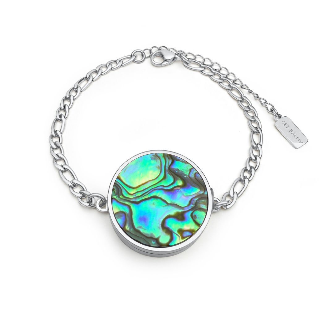 Blue Abalone (Pāua) Mini Lip Balm Bracelet in White Gold