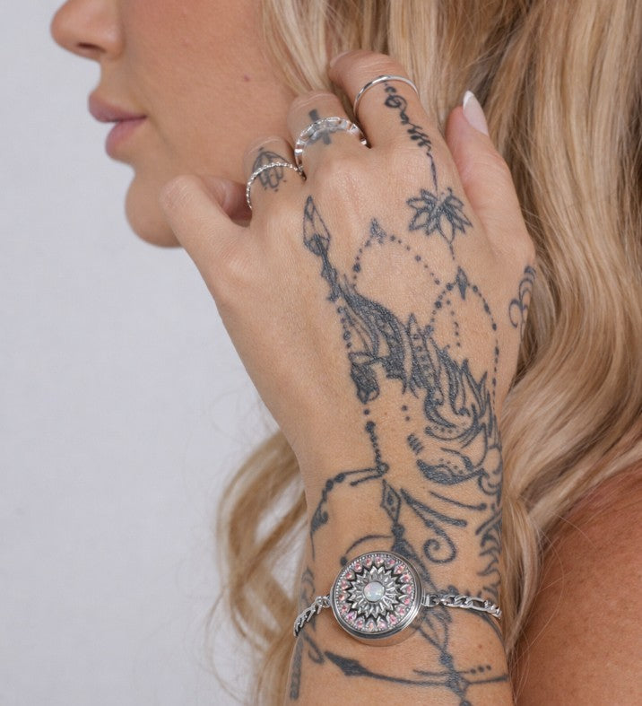 Mini Mother of Pearl Lip Balm Bracelet in White Gold