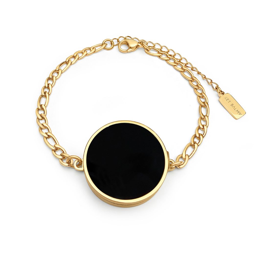 Black Onyx Mini Lip Balm Bracelet in 14K Gold