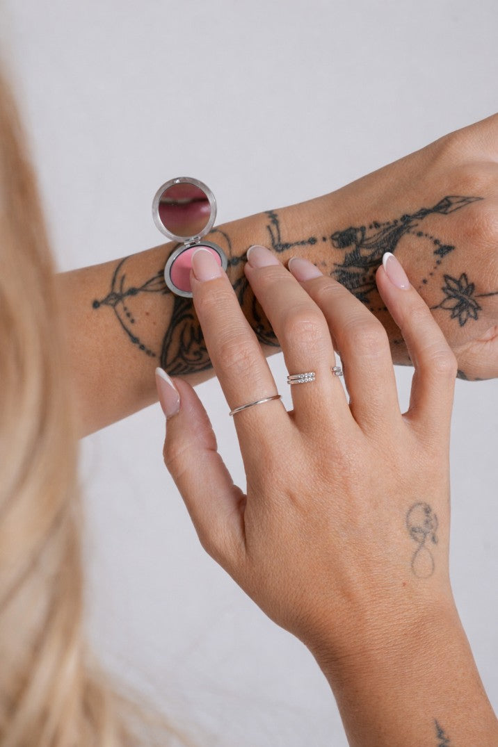 Stylish, refillable, and designed to be worn every day. No digging in your bag. No dry lips. Just glam at your hand, always.