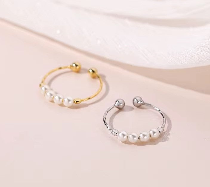 Elegant meets calming. This adjustable open band ring features lustrous rotating pearls on a textured 18k gold vermeil band—crafted from 925 sterling silver. Designed to ease anxious energy with discreet movement, she’s your go-to for grounding in style.