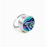 Blue Abalone Shell Lip Balm Ring in Stainless Steel