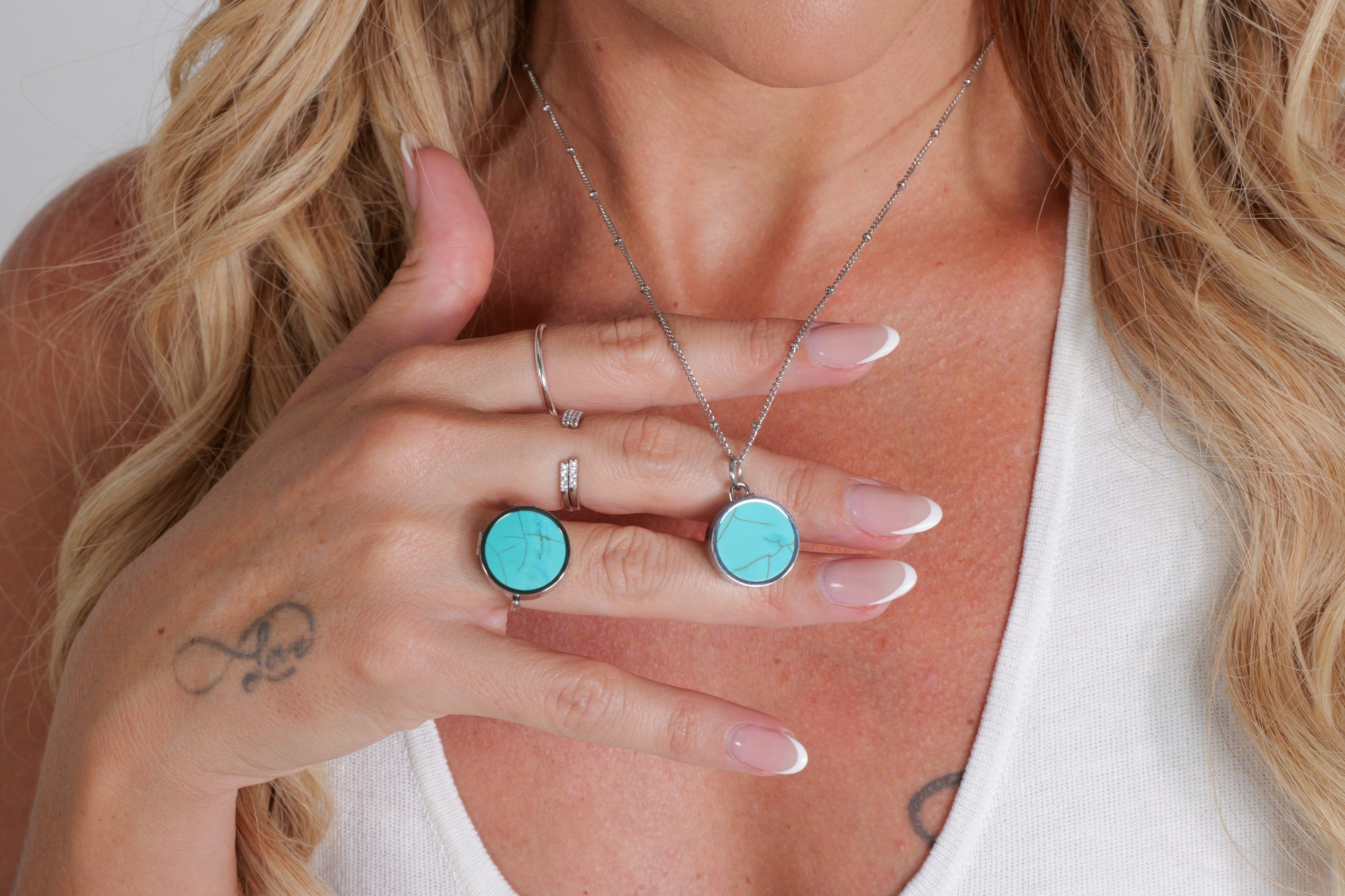 CMA Turquoise Lip Balm Ring in Stainless Steel