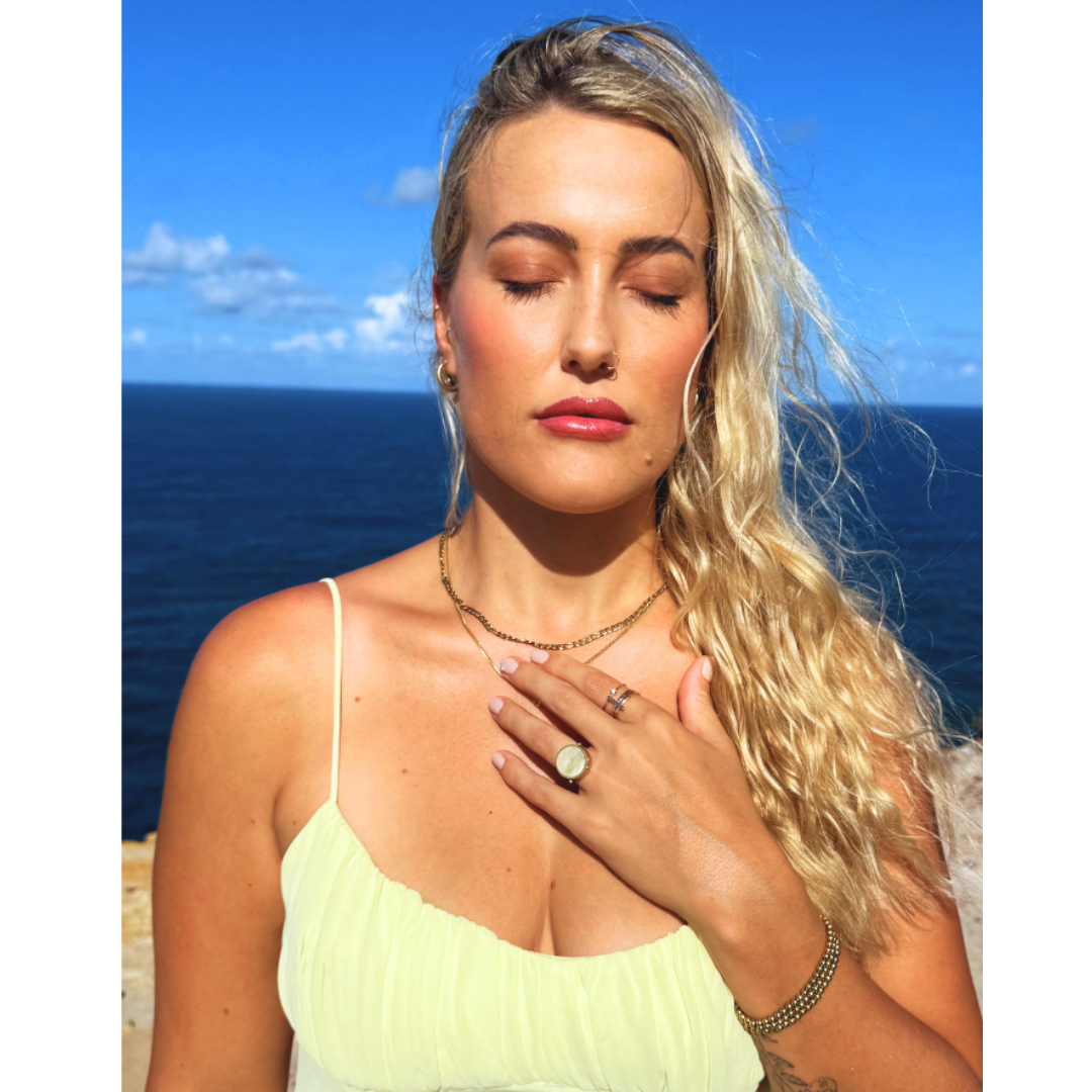 Crafted with a stainless steel base and finished in luxurious gold plating, Lacey is water-resistant, durable, and designed to keep up with your life. Her sleek internal clasp opens to reveal a hidden balm compartment—refillable, practical, and completely discreet.