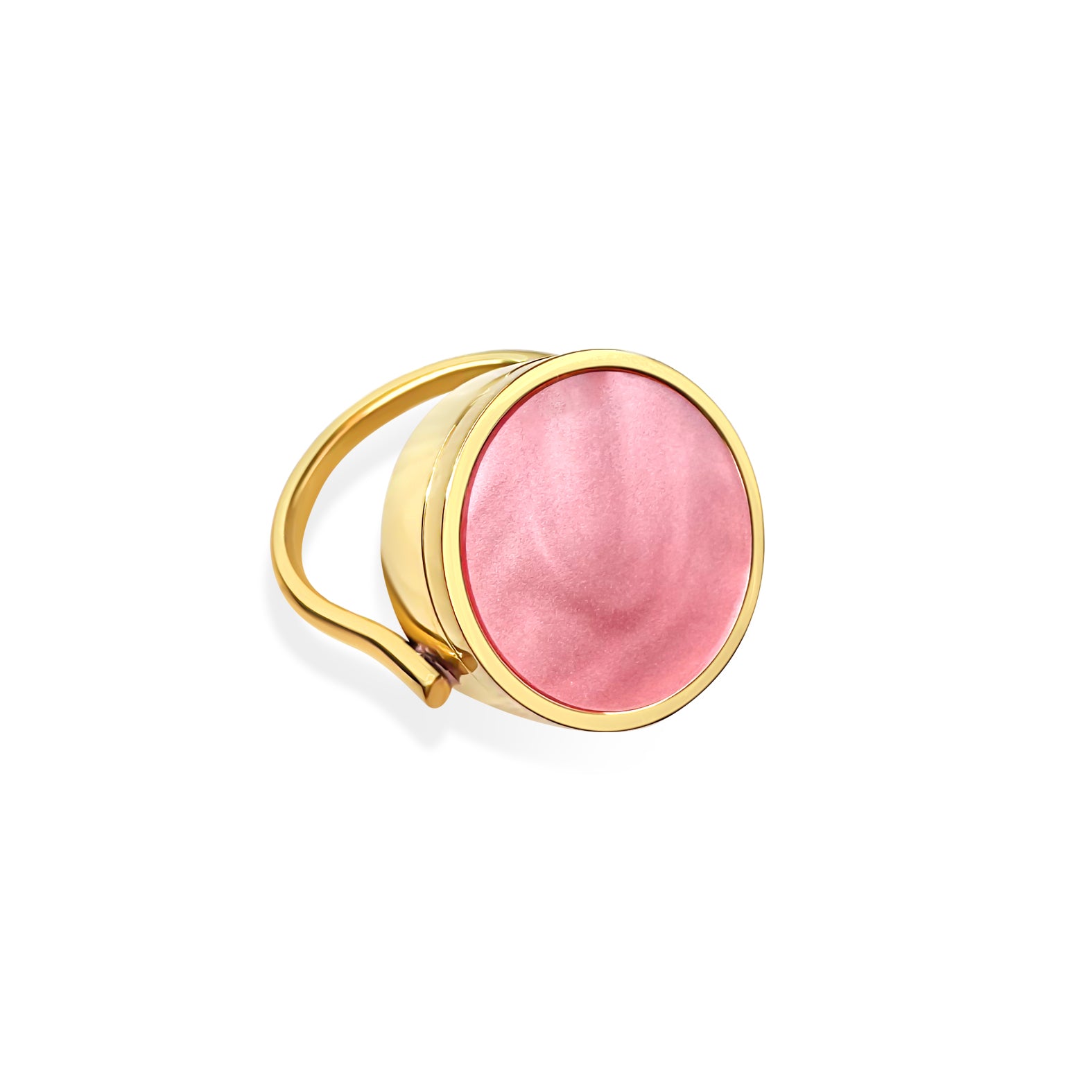 Introducing our elegant Rose Lip Balm Ring, where soft femininity meets everyday function. Designed with a romantic rose-pink top and a lustrous gold-plated stainless steel band, this ring offers both a stylish statement and a hidden lip balm compartment. She’s effortlessly pretty, timelessly modern, and created for women who want their beauty essentials within reach.